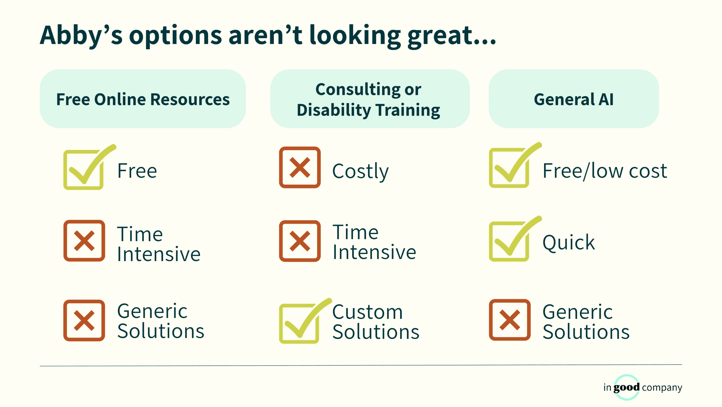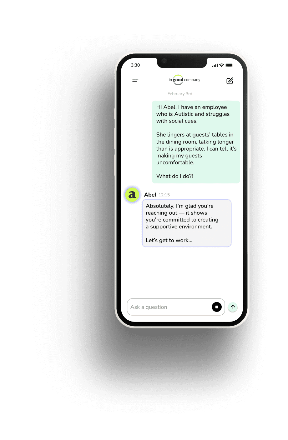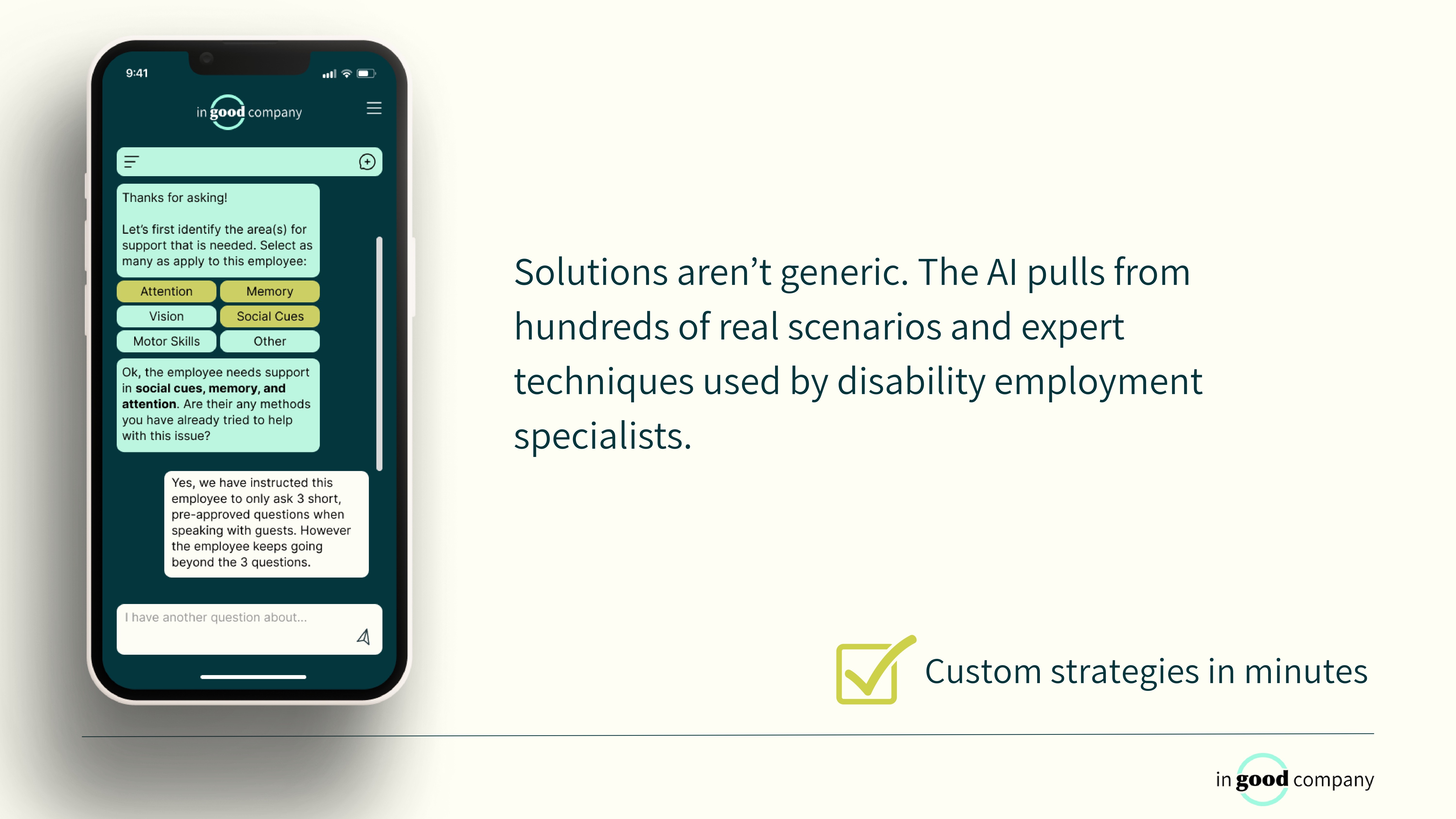 AI-powered insights specifically trained on disability inclusion best practices and real-world workplace scenarios