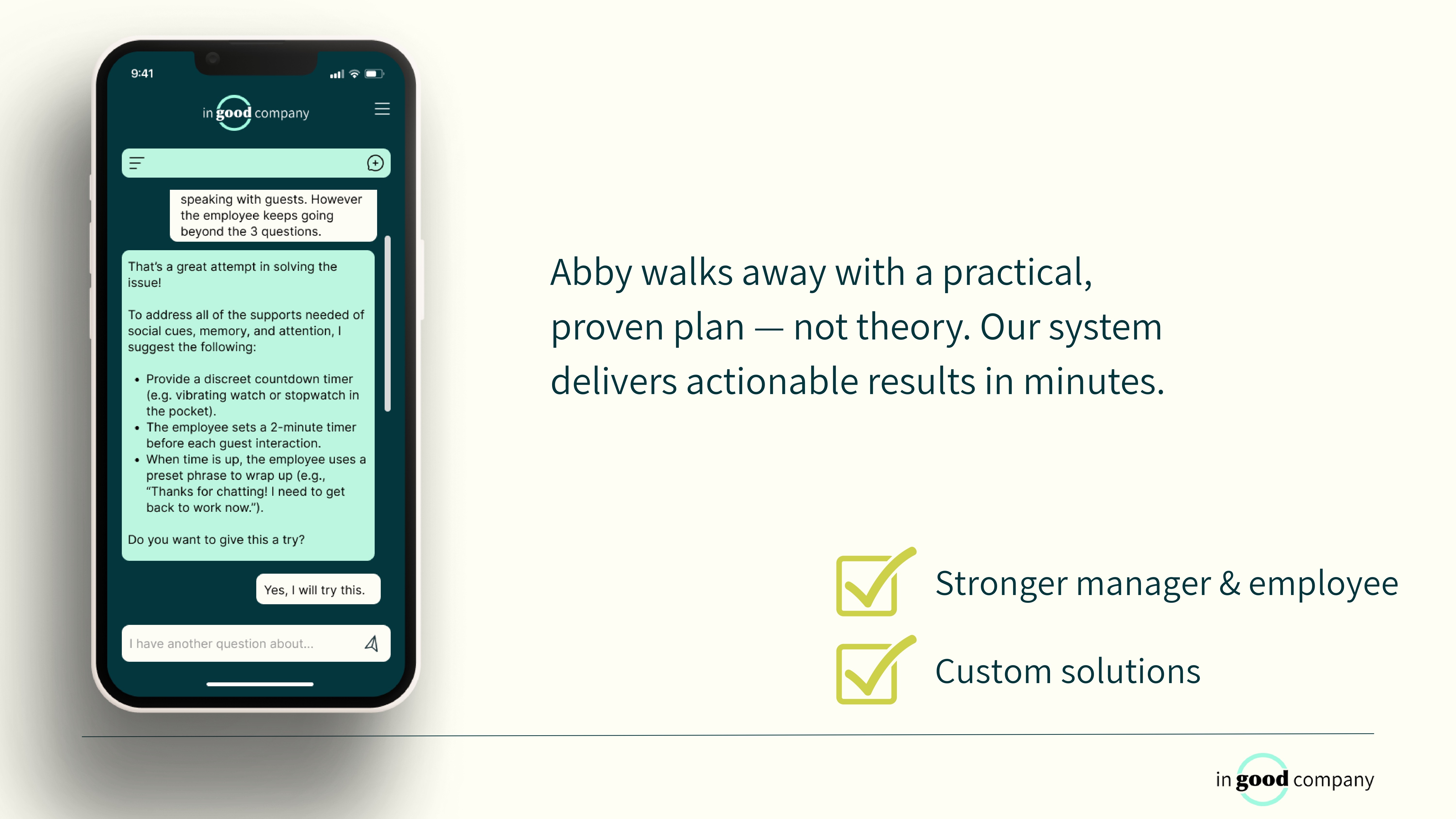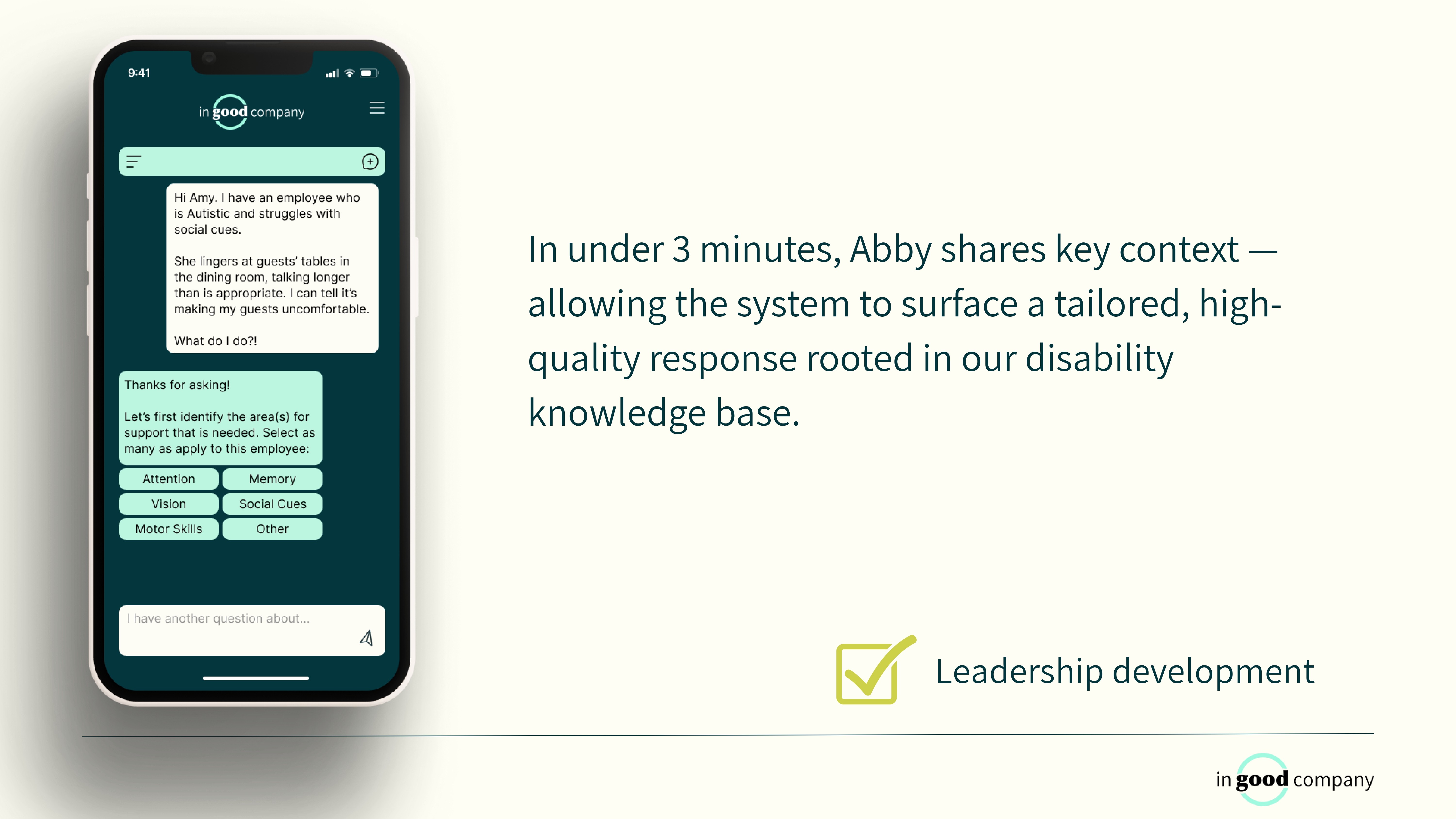 In Good Company provide leaders the tools to confidently manage and retain team members of all thinking styles, particularly those with disabilities.